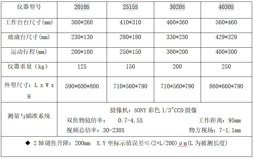 高精度二次元影像測(cè)量?jī)x技術(shù)參數(shù):